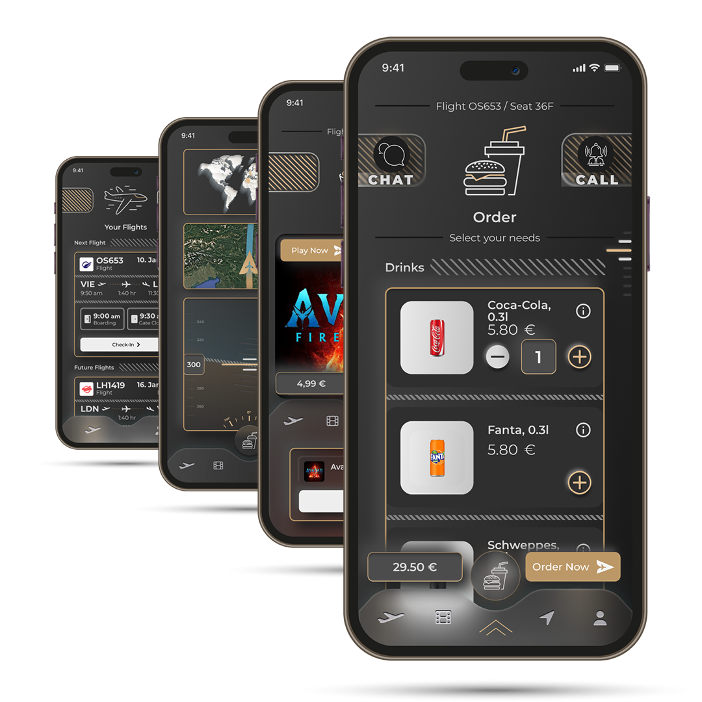 AEROMOND funktioniert offline und online und bietet einheitlichen Zugang zu allen relevanten Services an Bord: Getränke, Snacks, digitale Inhalte (Streaming), Duty-Free, Vorbestellungen und mehr – alles über eine einzige App, ein Nutzerkonto und eine Zahlungsmethode, unabhängig vom Betreiber.