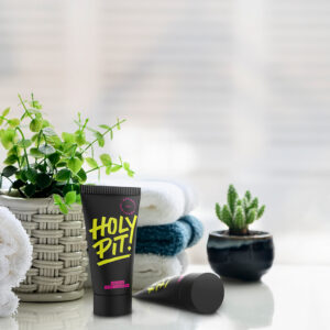 Anders als manch herkömmliche Deos sprüht HOLY PIT nicht einfach Duft unter die Achseln oder verstopft Poren. HOLY PIT schafft eine basische Umgebung. Für die stinkenden Bakterien ein No-Go. Für die Achseln ein Segen. Denn der unangenehme Geruch ist plötzlich weg. Den ganzen Tag.